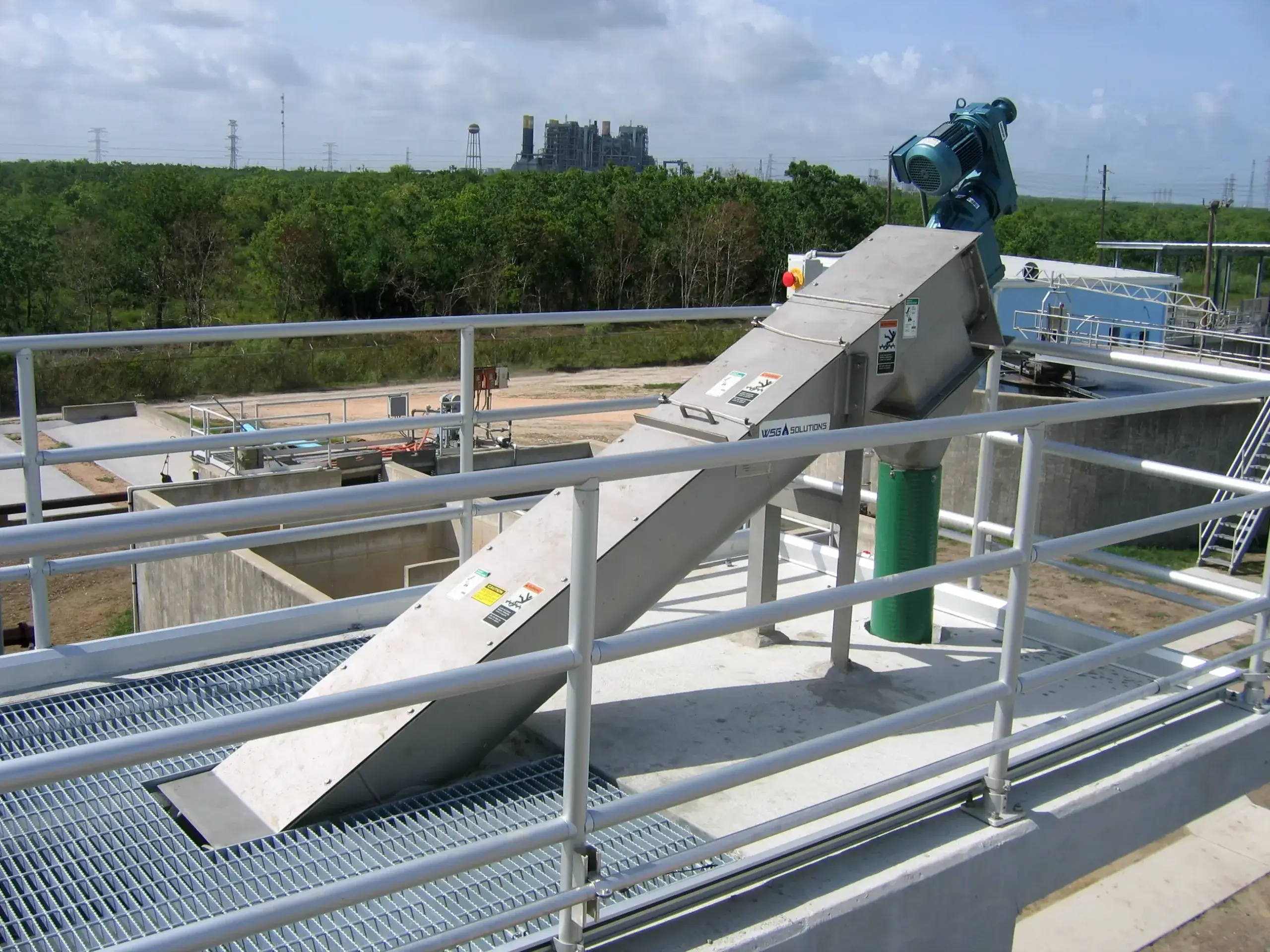 The Link-Belt Type AS Grit Collector is designed for small plants with flows up to 10 MGD. The unit consists of a hopper with an inclined screw and grit washer for removing and washing grit. Air is provided to maintain uniform velocities at all flows.